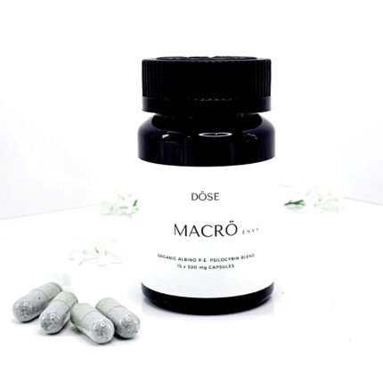 DÖSE MACRO ENVY is offered to provide an exceptionally euphoric, distinctly visual, and profoundly introspective mushroom experience. This special blend comprises 450mg Organic Albino Penis Envy (Psilocybe cubensis) in a potent 500mg capsule dose extracted only from the fruiting bodies of this rare and extremely difficult to harvest psilocybin mushroom. In addition, 50mg of organic peppermint (Mentha Piperita) has been added as a soothing agent for potential digestive upsets while decreasing instances of nausea, or headaches. Each bottle contains 15 capsules – Vegan friendly and Gluten-Free.
