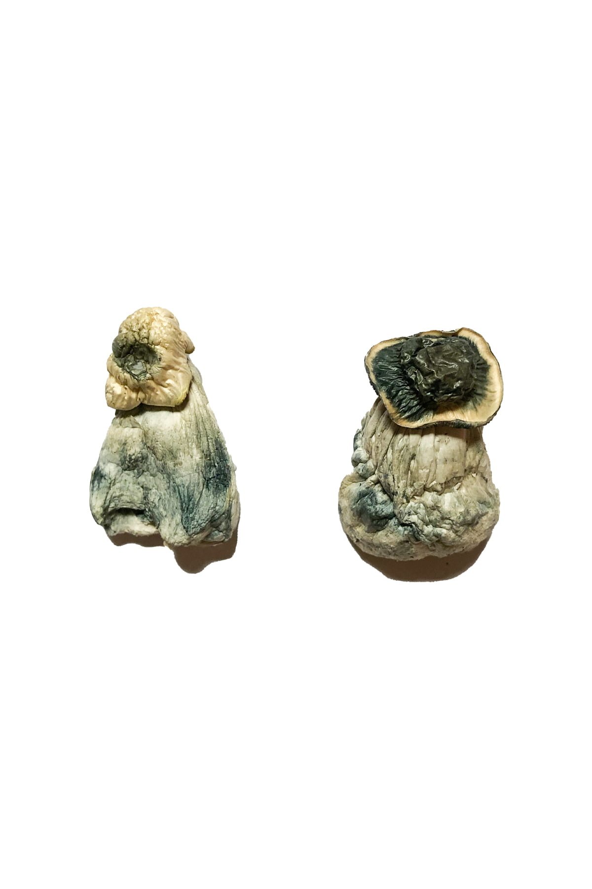 The appearance of the Albino Penis Envy psilocybin mushrooms can be described as thick and stout. The caps are often small relative to their extremely thick stem and are white or black in color. Because this is the Albino version, all parts of the shrooms are mostly white, black/blue, or very light in color. Albino Penis Envy shrooms grow extremely slow and are very sensitive to their growing environment. Mycologists report that its slow growth time allows the Albino Penis Envy magic mushrooms to produce more psilocybin during its fruiting stage.