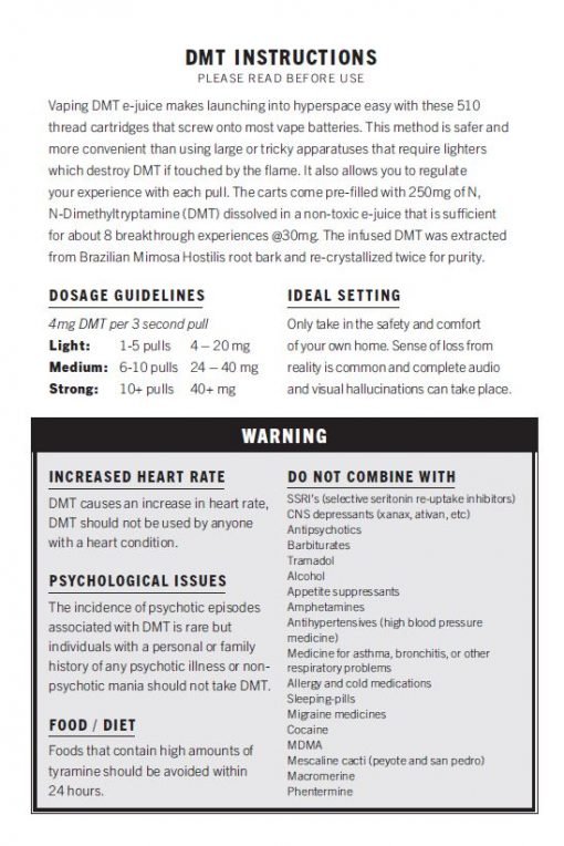 DMT INSTRUCTIONS – PLEASE READ BEFORE USE:
