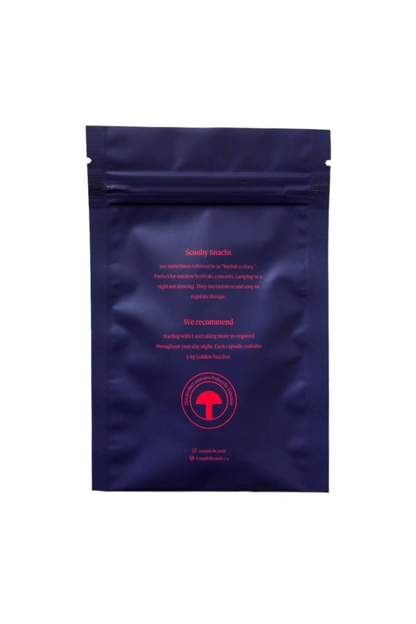 Temple Scooby Snacks, also called Scooby Snax, Scoobies, or Scoobs are fun little pills that contain 250 mg of psilocybe cubensis, 125 mg of Bee Pollen, and 125 mg of Ginseng. This combination of herbs provides a balanced and energetic experience.